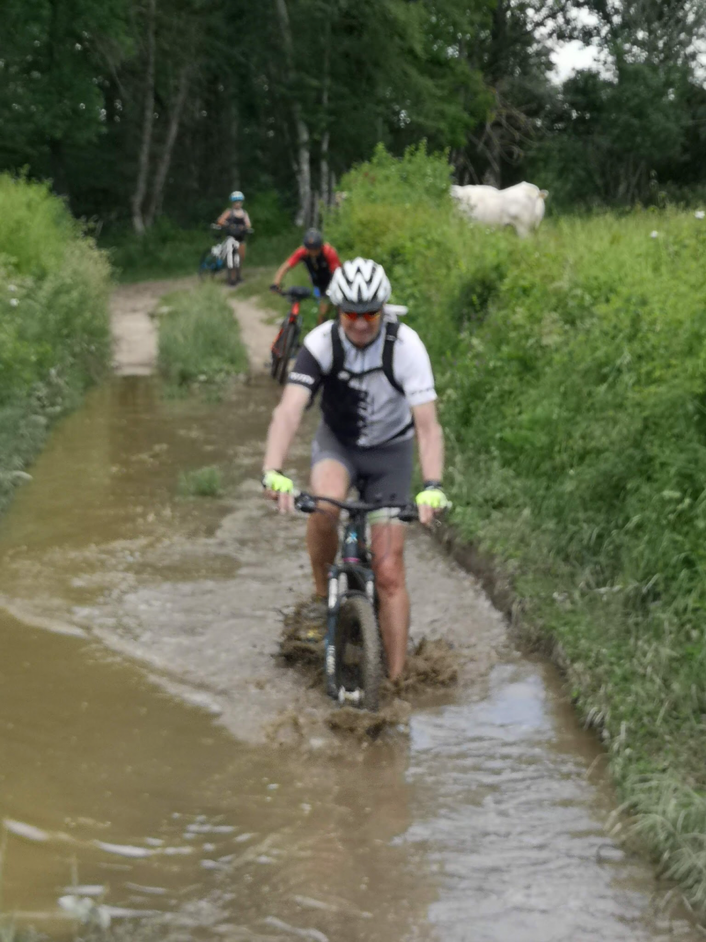 Bravo à toute l'équipe car nous avons la même température à Bourges sauf que moi je suis à l'intérieur les volets fermés en ayant chaud à ne rien faire alors vous sur vos montures j'imagine difficilement.... mais je constate que rien n'entame votre esprit d'équipe, votre bonne humer, votre envie de pédaler et d'en découdre avec les sentiers chapeau à tous et chapeau bas aux filles qui possèdent la même pugnacité que les mecs !!!!! et mon Bébert dans tout ça... profite un peu ou galère beaucoup dans son camion et la chaleur. Bonne journée à tous et la pluie en fin de journée pour tout le monde mais vous devriez être à la chambre d'hôtes avant. Bisous à tous mais après votre douche (sans ou cent commentaires) -
