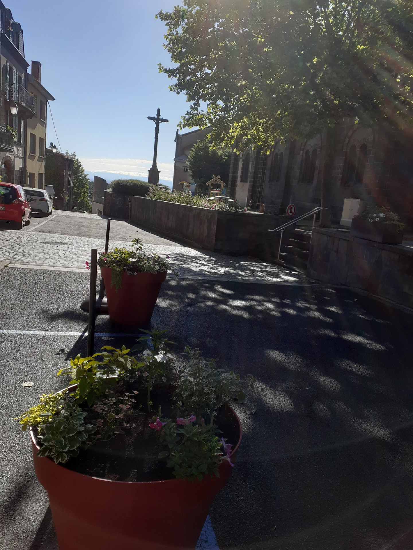 Mais vite effacé par la petite surprise que nous avions préparée pour l'anniversaire de Marie. Petit déjeuner hyper sympa et très agréable et qui inhiba la déception suivante car l'église était fermée....Il ne restait plus qu'à préparer nos montures sur cette belle place centrale de Volvic,