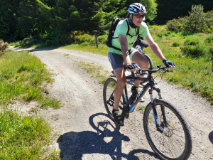 la .GTMC à VTT poursuit sa traversée de la Margeride par les bois avec quelques points de vues sur le Devès, le plateau ardéchois, le Cantal et l'Aubrac au détours de pâturages.
