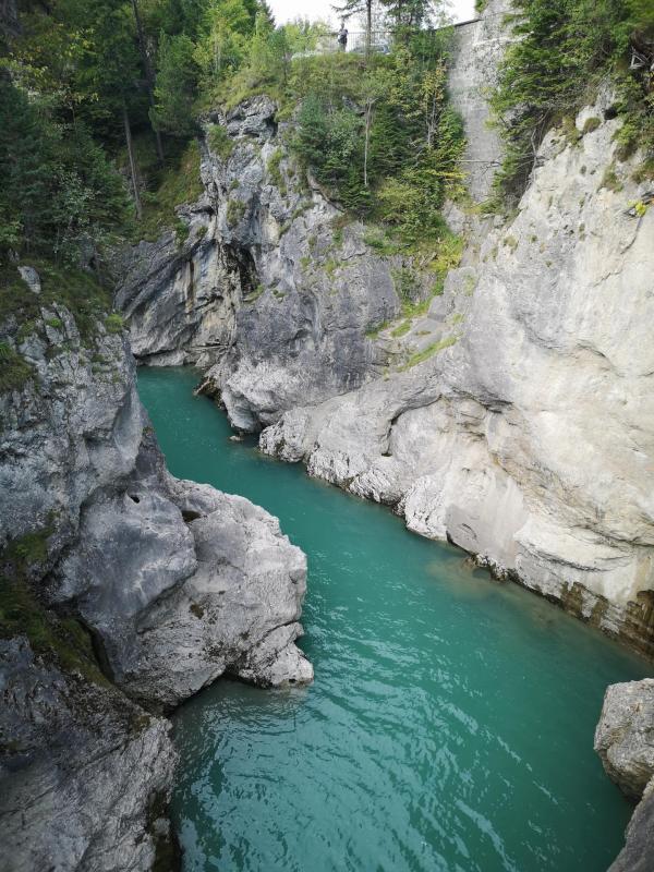 Nous voilà parti pour 18,5 km et 420 m de dénivelé pour se rapprocher de plus en plus du terminus de la Lech. Son cours est domestiqué pour éviter les inondations avec des rochers posés en épis dans son lit pour protéger les berges, casser la puissance des flots et ramener les alluvions vers le centre du cours d'eau. Du coup, même si le débit est fort, sa puissance, maîtrisée, lui fait perdre sa joie et sa voix rugissante.