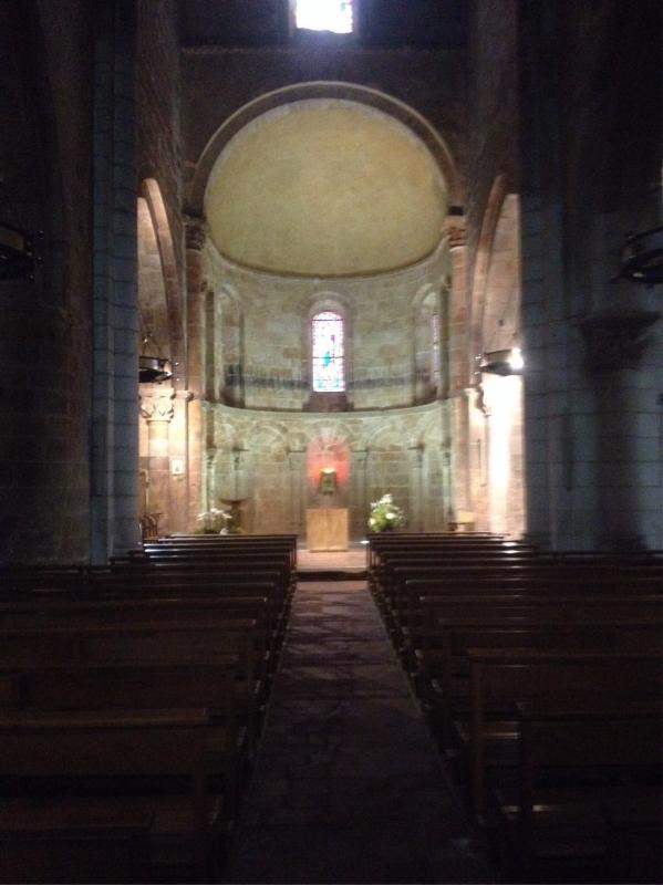 Je connaissais Conques pour y être venu plusieurs fois et même un WEEK-END randonnée organisé par l'ami Dany. Pas de surprise et pourtant que c'est serein et beau. Niché sur une colline, ce bourg médiéval nous accueille dans une atmosphère incomparable, La beauté de l'architecture du village lui-même avec sa pierre blonde est rouge nous laisse une première impression d'émerveillement. Enfin, J'arrive au pied de l'abbatiale Ste Foy. Le tympan est splendide avec toutes ces sculptures au-dessus du portail. L'intérieur est un chef-d'oeuvre de l'art roman et les vitraux de Soulages, sobres, sont en harmonie avec le lieu. Je n'ai pu voir Sainte-Foy car l'entrée était payante. A l'église.....